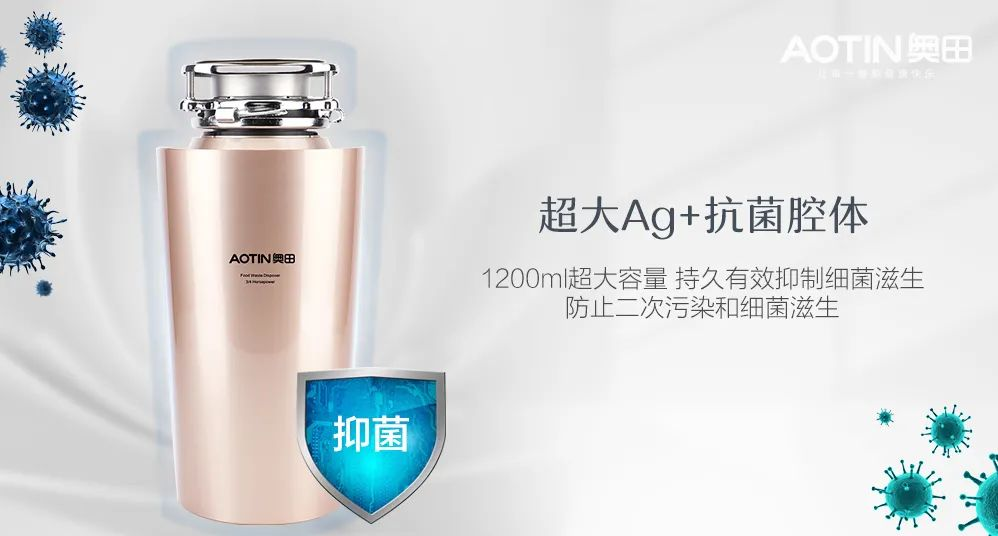 其次是厨余处理器容量越大,处理垃圾效率会更高,如果水槽下预留的位置足够,尽量选择大容量的,效率快,省水省电。奥田垃圾处理器拥有1200ml超大Ag+抗菌腔体,能够持续有效抑制细菌滋生,还能提高清理厨余垃圾的效率。